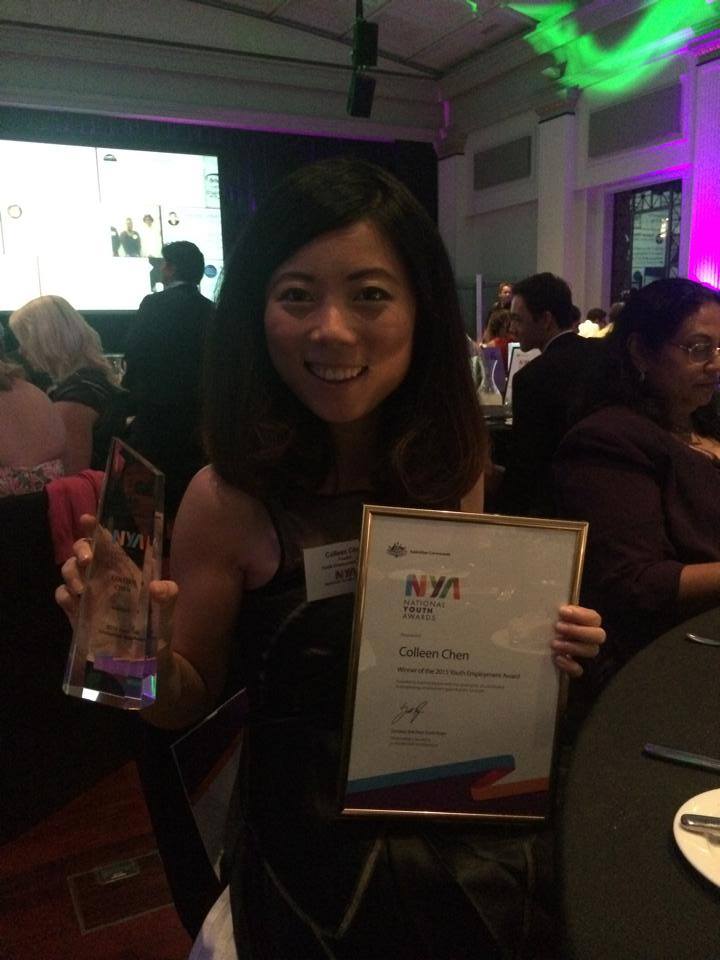 Interns Australia is proud to announce that co-founder and director Colleen Chen has been recognised as the winner of the 2015 Employment Award at the National Youth Awards.